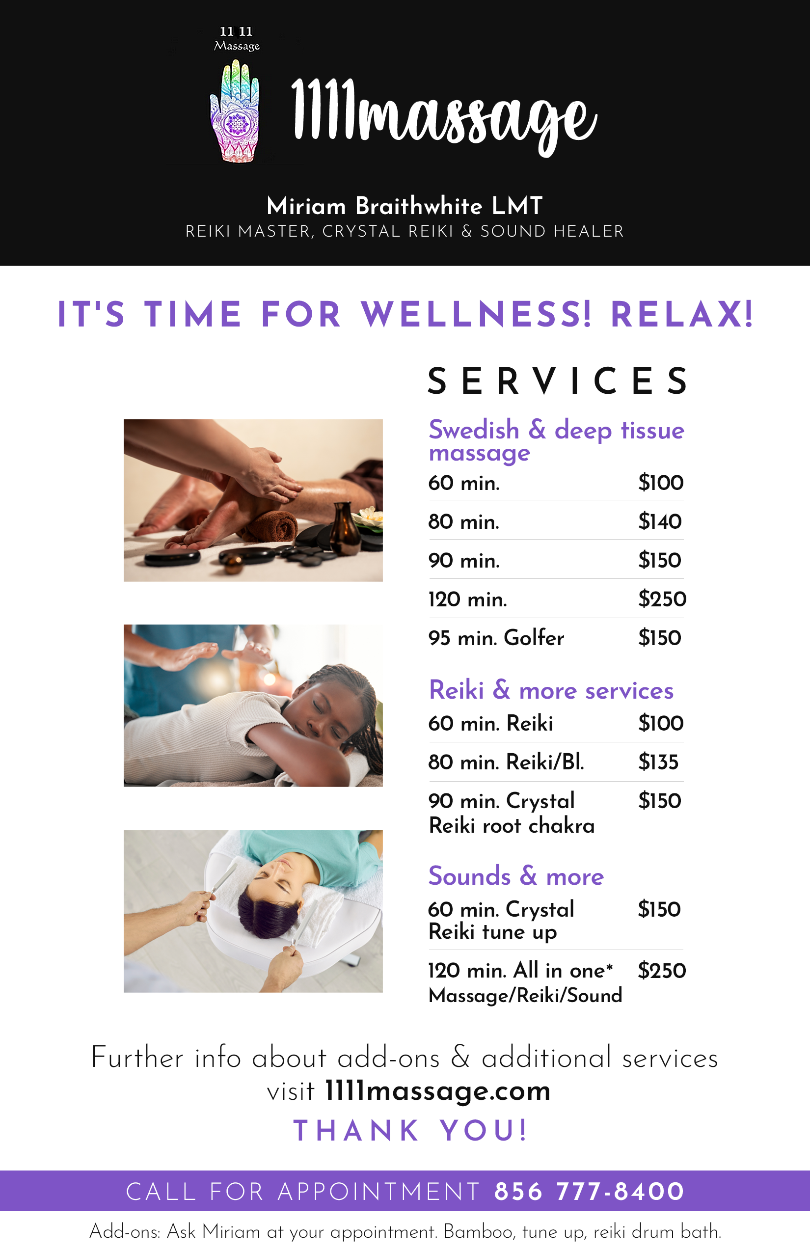 Massage Therapy: By appointment only.